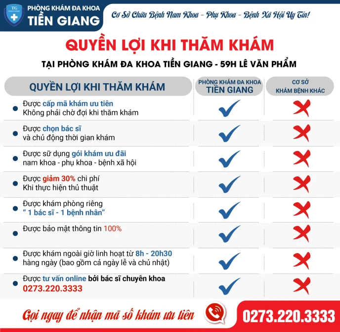Bên cạnh những phương pháp chũa trị hiện đại, Phòng Khám Nam Khoa Tiền Giang còn được người bệnh đánh giá cao với những ưu điểm như: