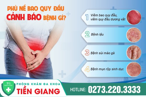 Các bệnh viêm nhiễm bao quy đầu và bộ phận sinh dục đều có biểu hiện đặc trưng là bao quy đầu bị phù nề. Ngoài ra phù nề ở bao quy đầu còn kèm theo mụn nhỏ trên bề mặt da, ngứa ngáy, đau rát và có dịch mủ mùi hôi khó chịu.